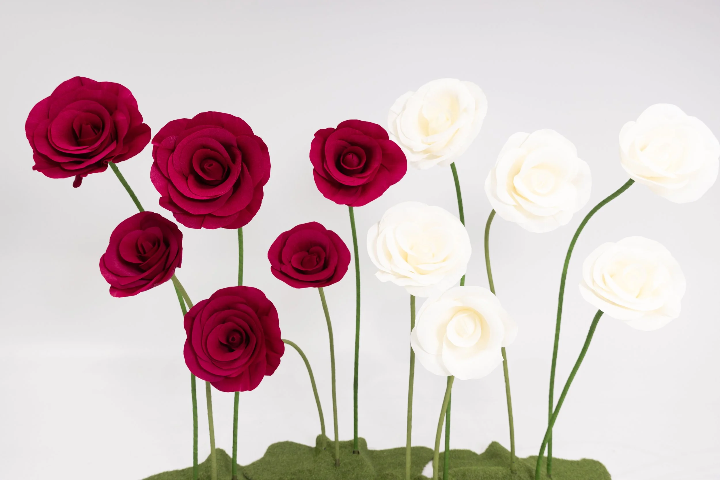 Make bold impressions with our handcrafted giant paper roses, standing 1.5 to 2.2 meters.